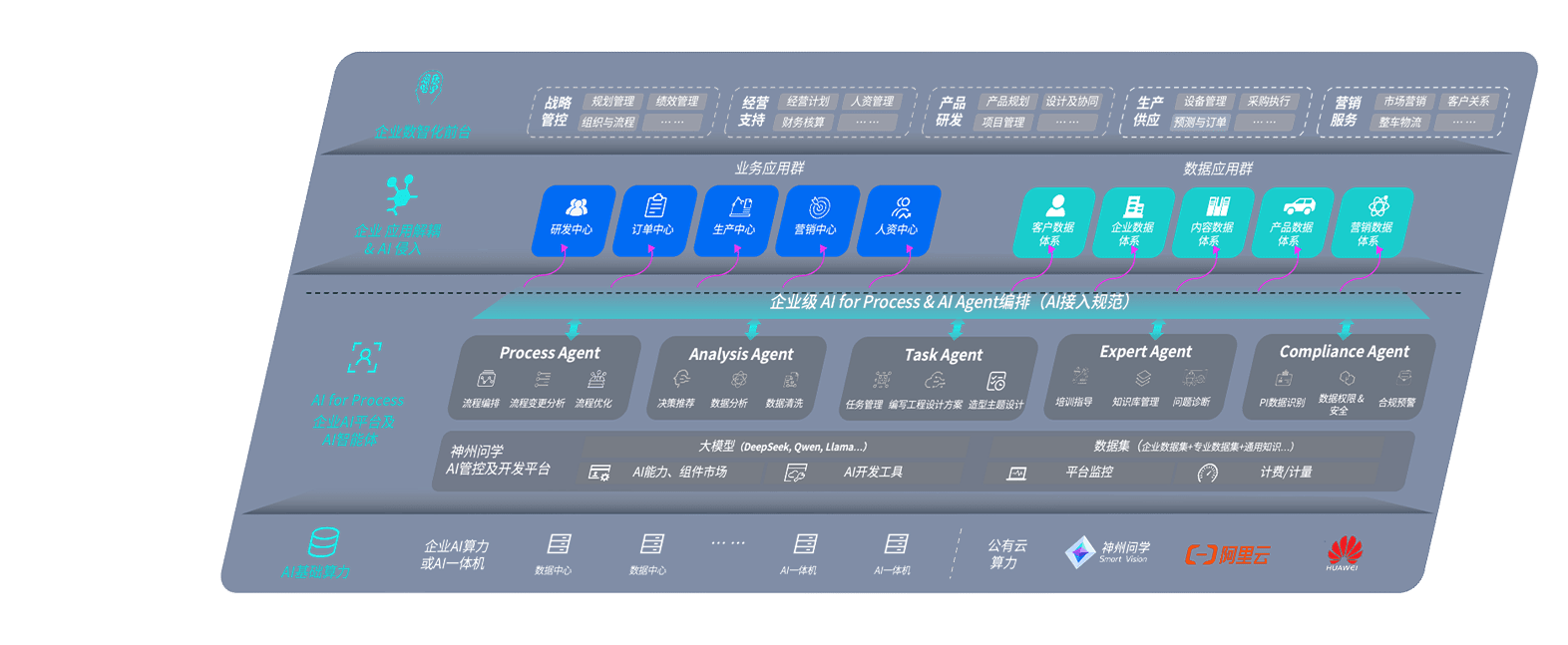新宝5问学智车解决方案是一套基于AI技术的汽车行业智能化系统,,,覆盖从底层算力到顶层AI应用的全栈方案。。。。方案由算力层、、、、模型层和应用层组成:算力层,,方案支持多种一体机配置,,,具备云端灵活部署、、多云适配以及动态优化计算资源的能力;模型层,,,新宝5问学平台版提供了企业级AI应用一站式构建与管理平台,,,,支持基于后训练强化技术的汽车企业专属模型的训练、、、评测和运营;应用层,,,,新宝5问学DeepSeek版提供包括超级员工、、、智能招采、、、、智能营销、、智能客服、、、AI for BI等一系列解决方案,,可助力汽车行业实现数字化转型,,,,让管理更智能、、、、响应更敏捷。。。